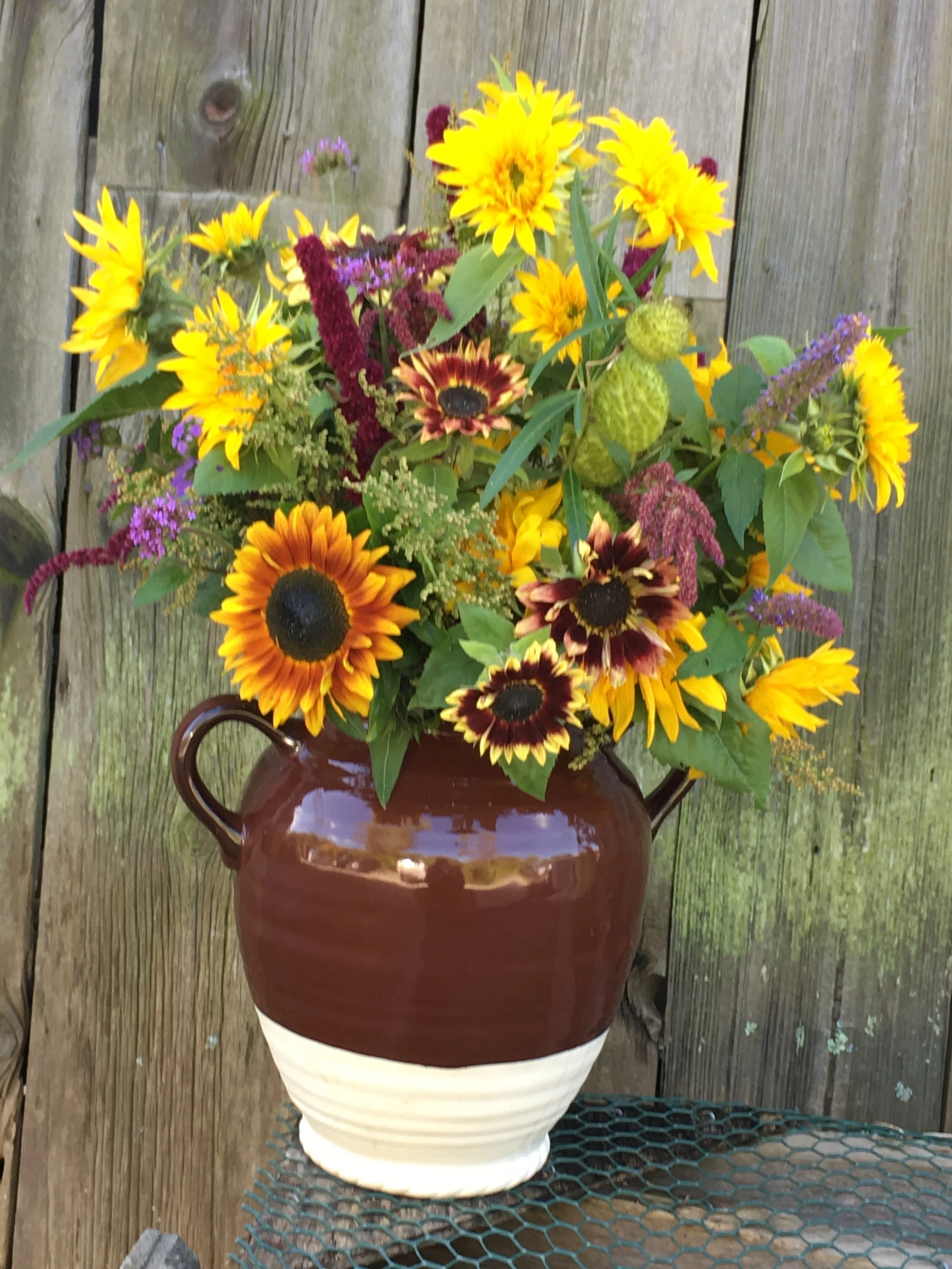 Make a Spectacular Sunflower arrangement from Turner Farm’s selection of beautiful multi colored sunflowers. A 11” glass vase, instruction and tape will be provided. Or bring your own large favorite vase. Melinda will demonstrate making the arrangement. Then participants will enjoy roaming the Turner Farm cutting garden for beautiful sunflowers and other interesting materials to tuck into their masterpiece.