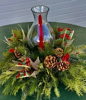 Get in the holiday spirit by making your own fresh and fragrant holiday centerpiece! We will be creating beautiful arrangements using fresh evergreens, red berries, a red tape, pinecones, a clear glass chimney, ribbon and white flowers. All necessary materials will provided. Keep this long-lasting centerpiece watered, and you will be enjoying it long after Christmas.